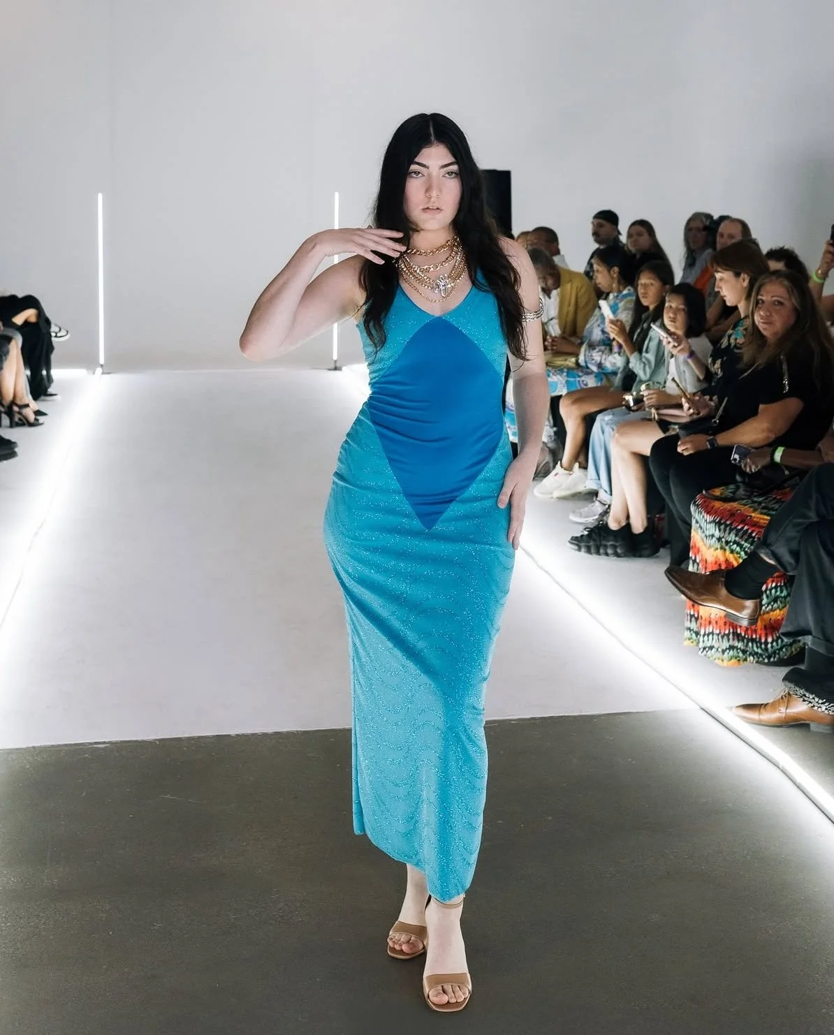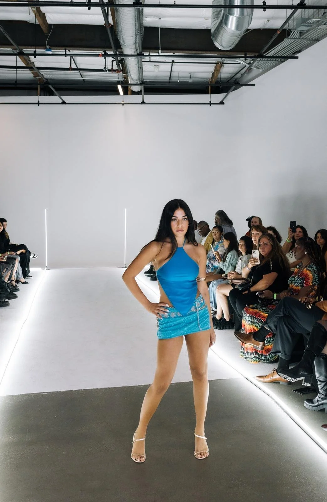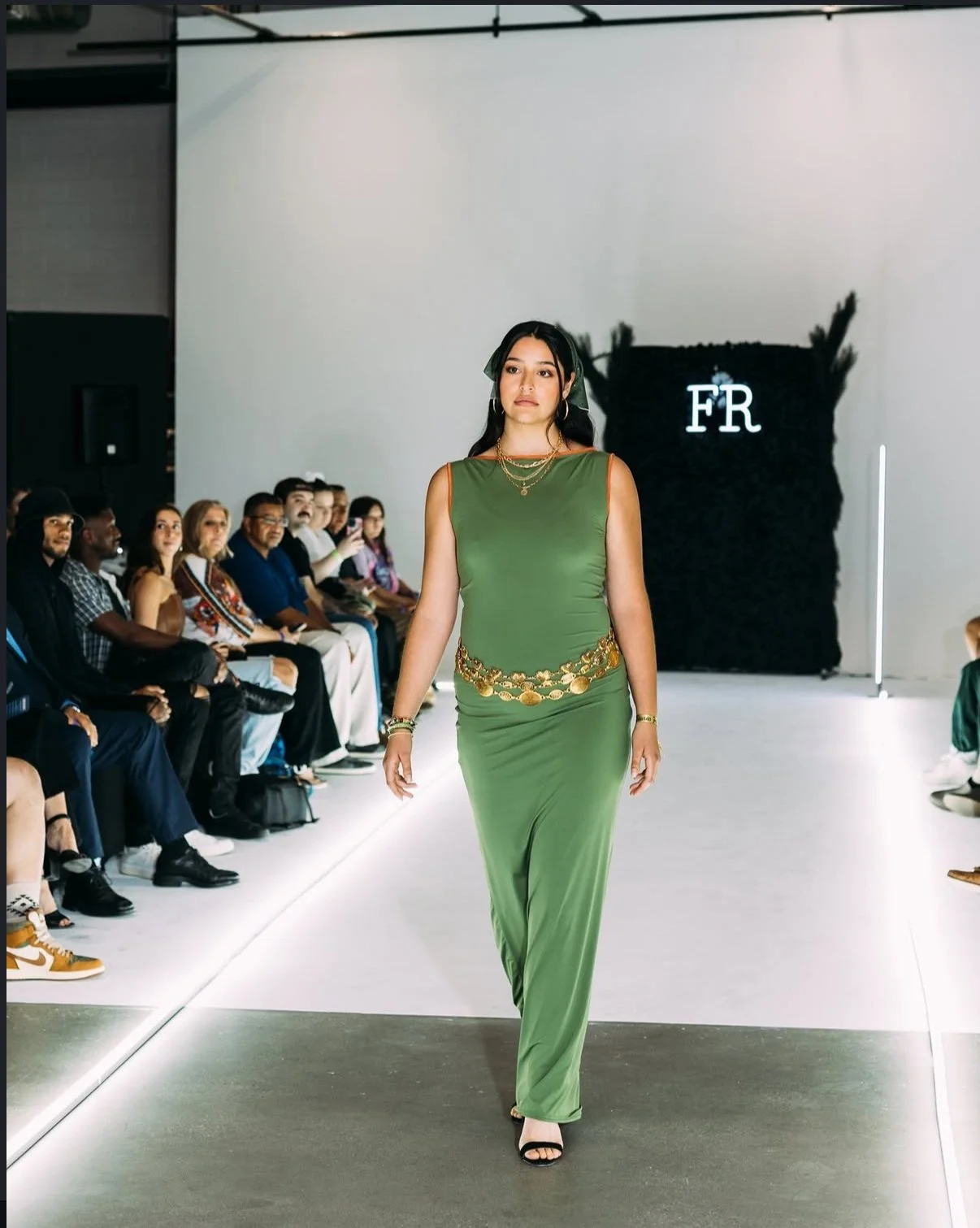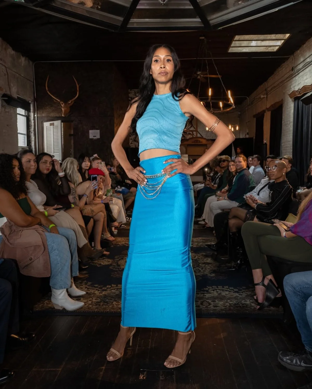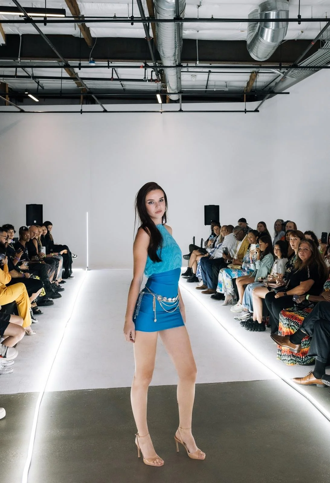 This one holds a special place. The Nita was shown at Fashion Redux 2025 and ended up winning People’s Choice and Most Creative Fabrication. It’s currently on display at the San Diego History Center and was inspired by vintage glam, bold textures, and a little upcycling magic.