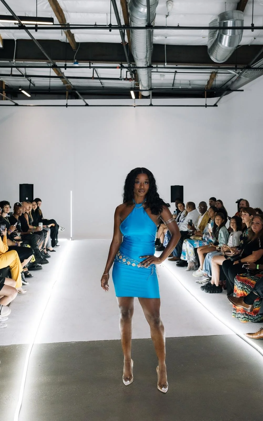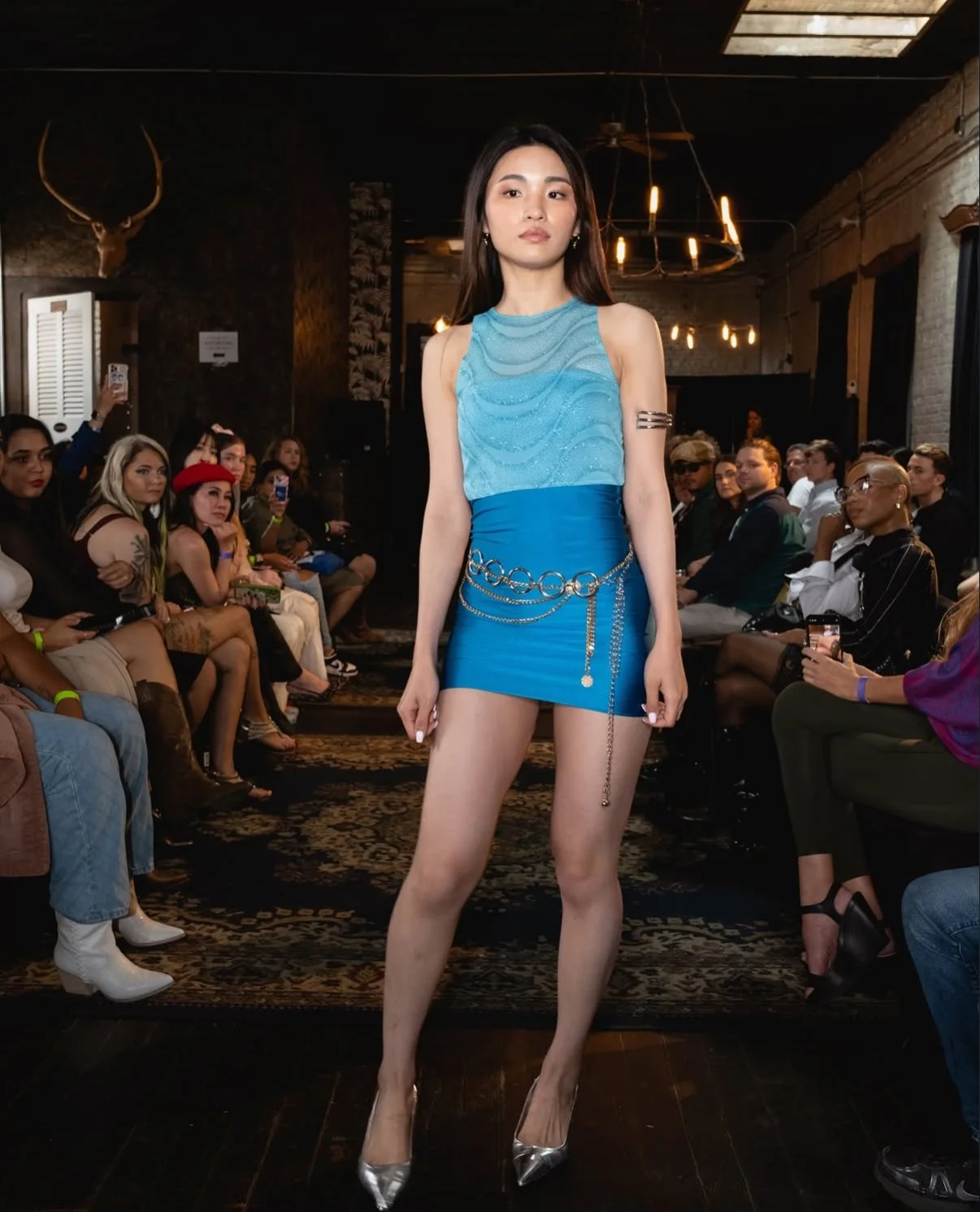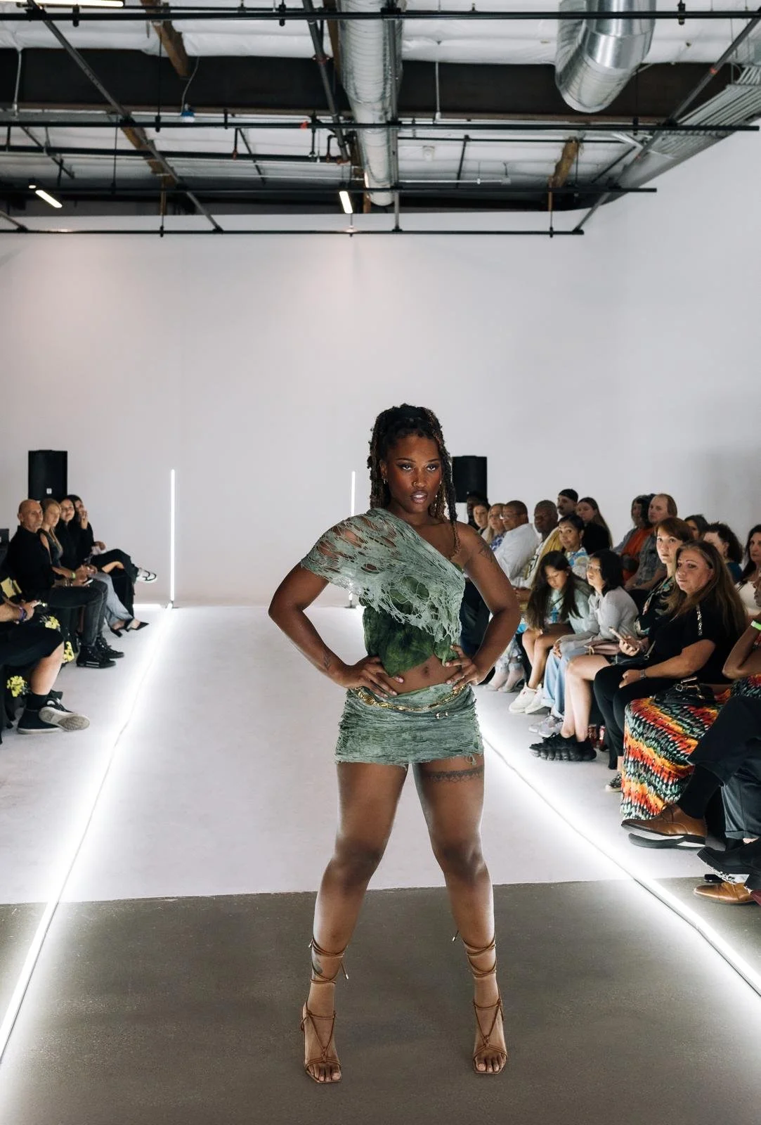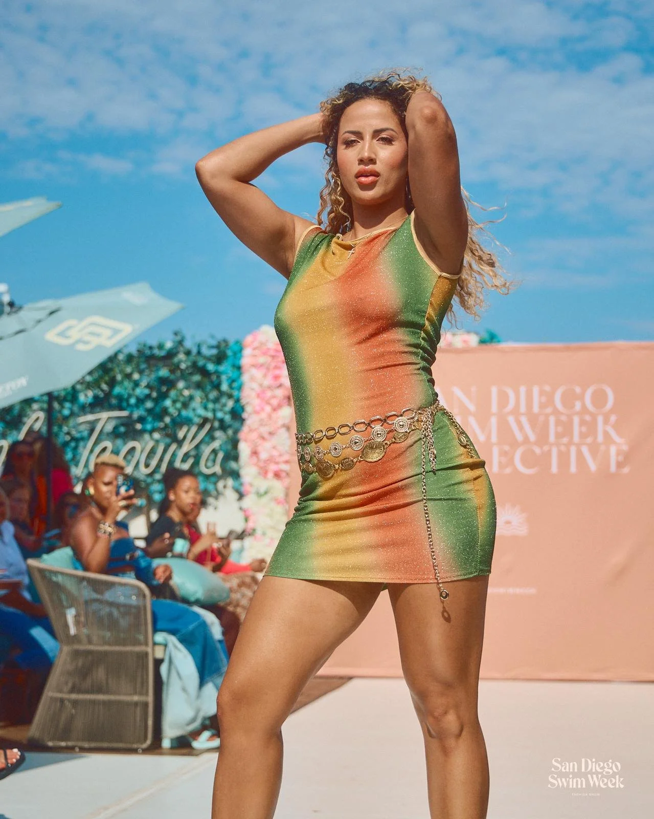 This one holds a special place. The Nita was shown at Fashion Redux 2025 and ended up winning People’s Choice and Most Creative Fabrication. It’s currently on display at the San Diego History Center and was inspired by vintage glam, bold textures, and a little upcycling magic.