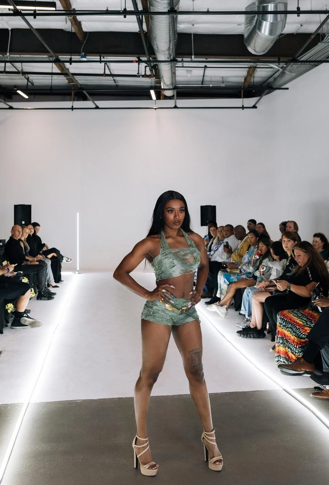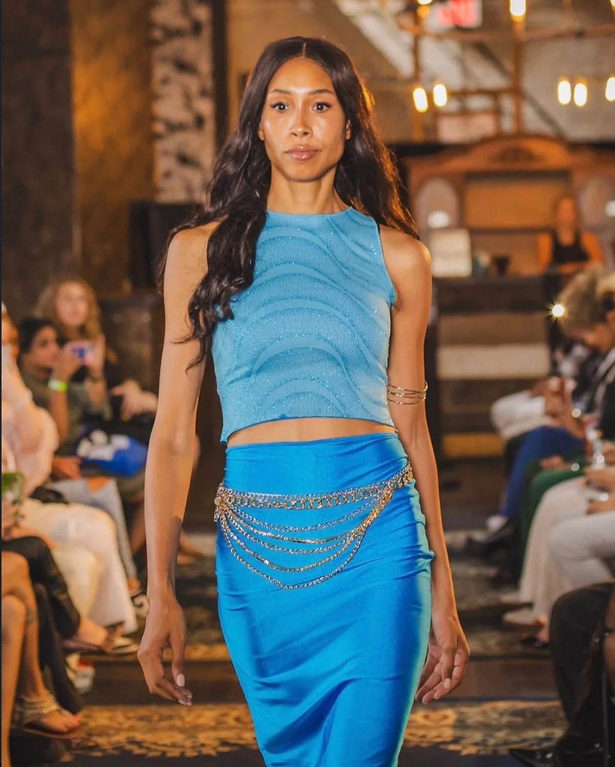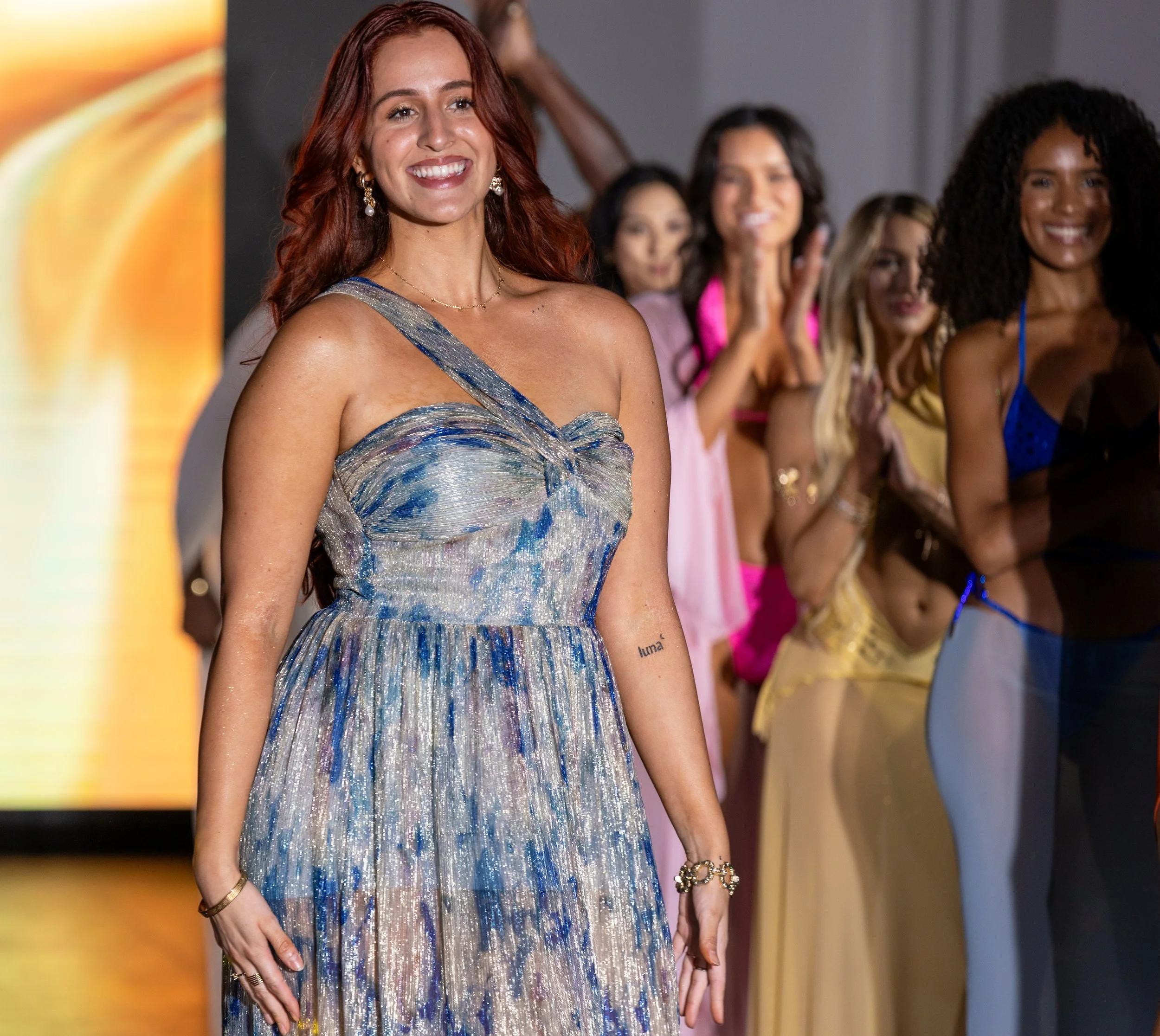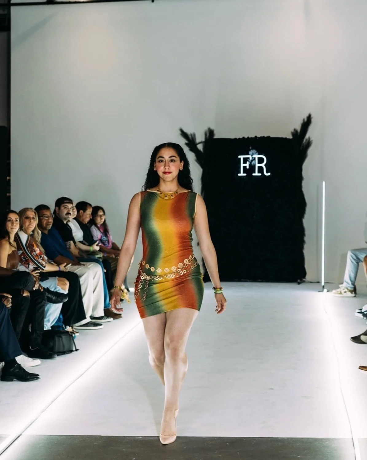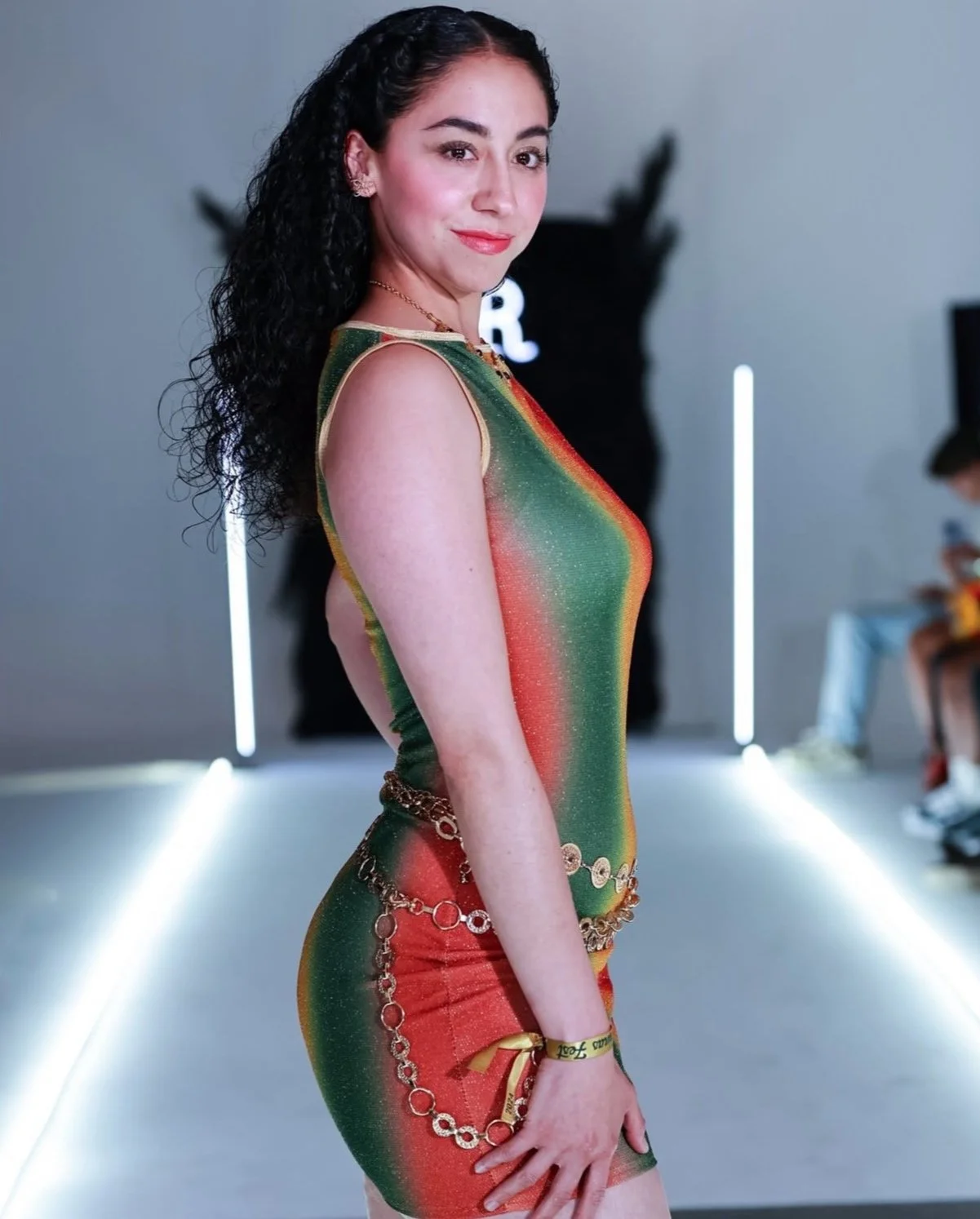 This one holds a special place. The Nita was shown at Fashion Redux 2025 and ended up winning People’s Choice and Most Creative Fabrication. It’s currently on display at the San Diego History Center and was inspired by vintage glam, bold textures, and a little upcycling magic.