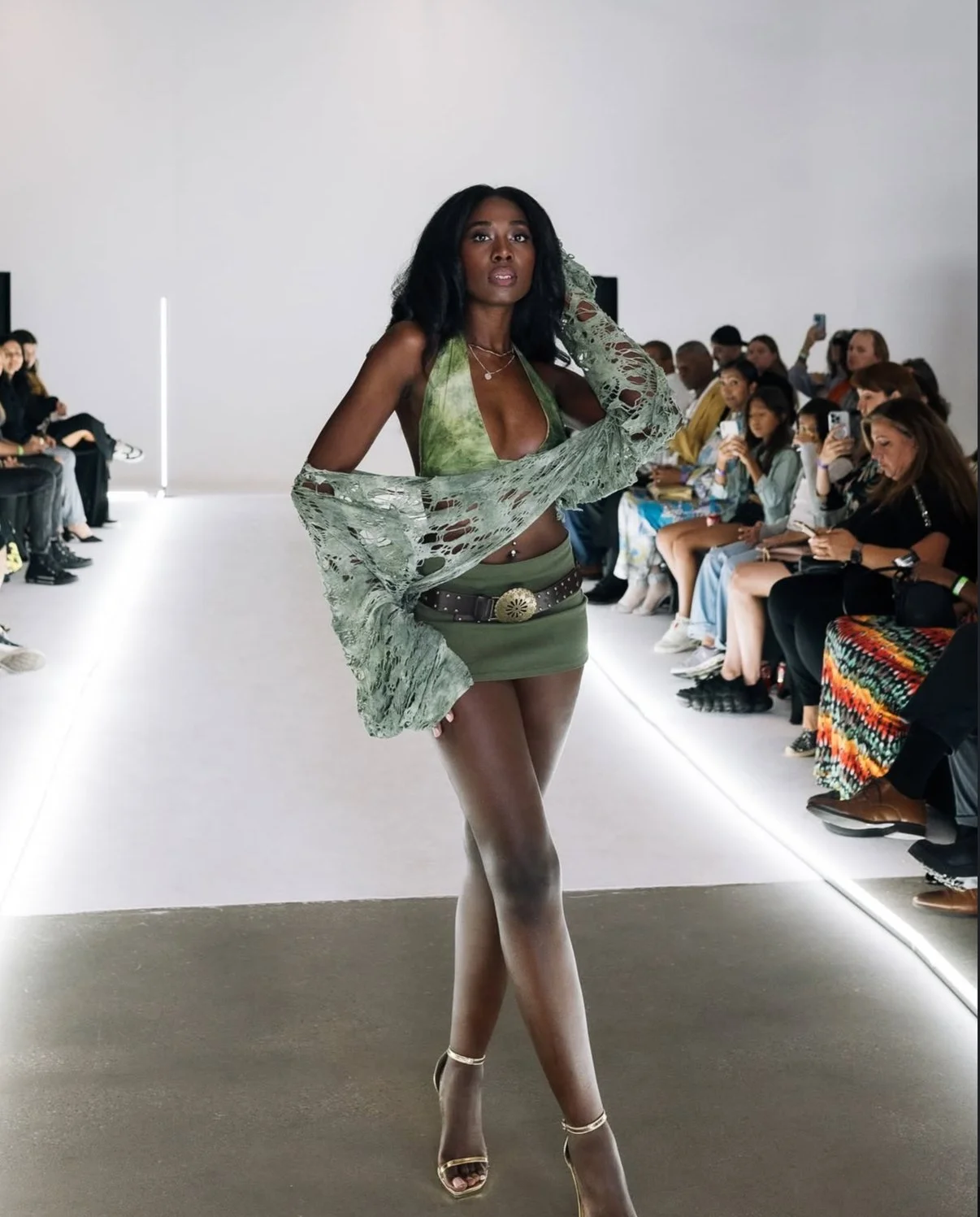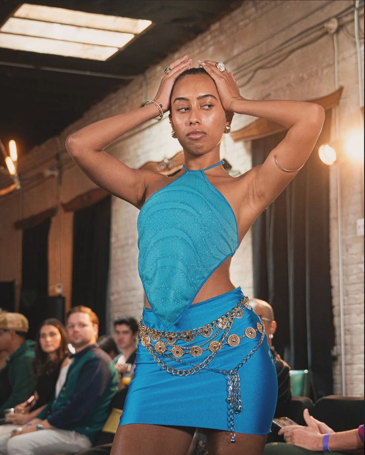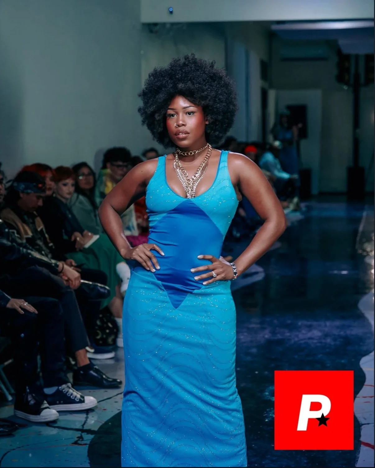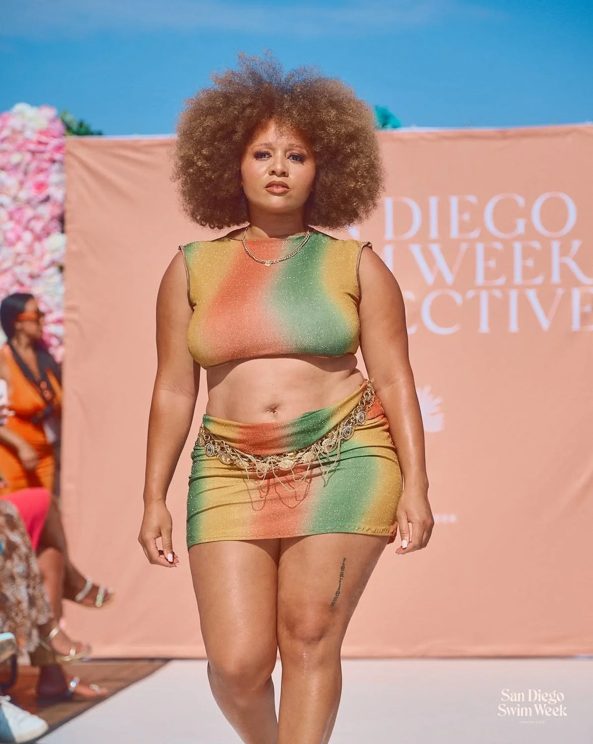 This one holds a special place. The Nita was shown at Fashion Redux 2025 and ended up winning People’s Choice and Most Creative Fabrication. It’s currently on display at the San Diego History Center and was inspired by vintage glam, bold textures, and a little upcycling magic.