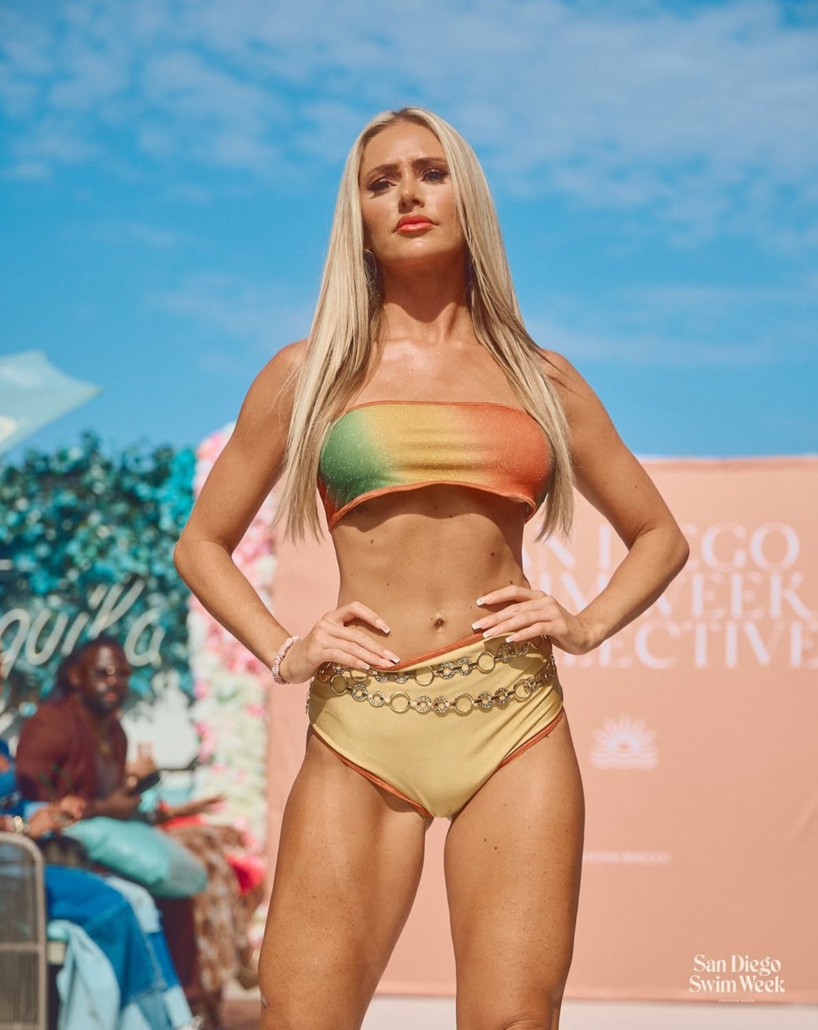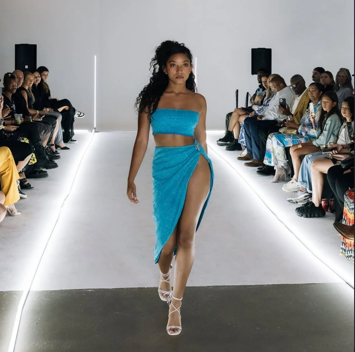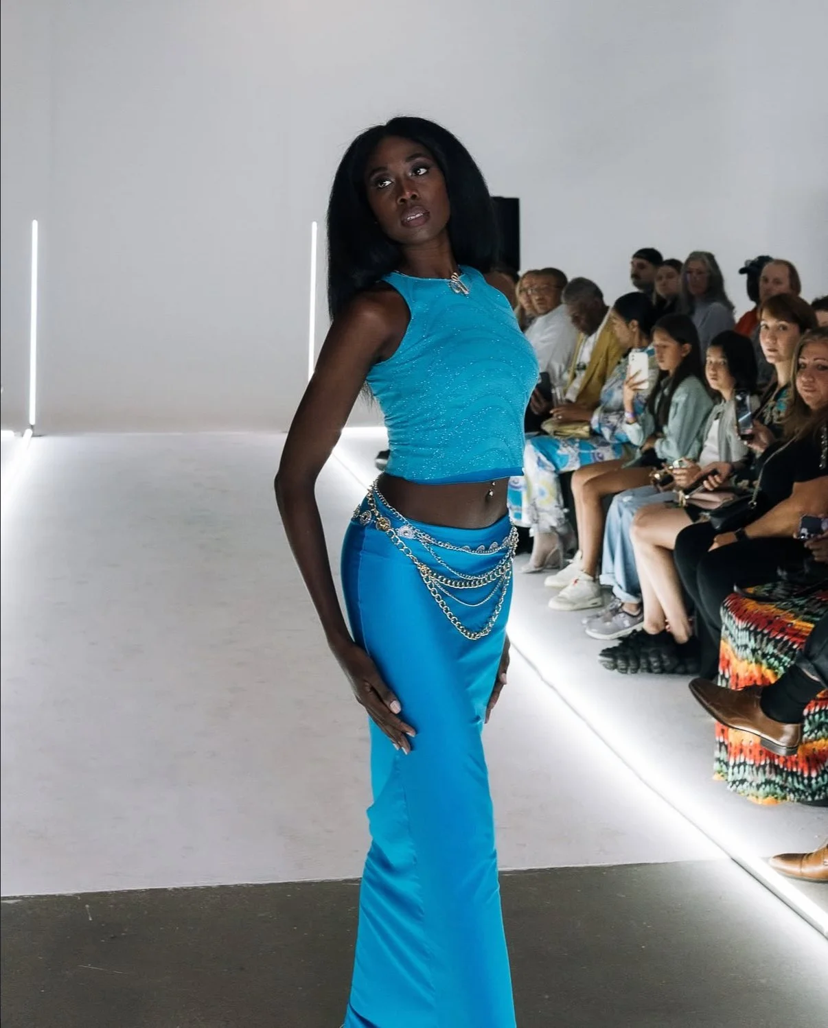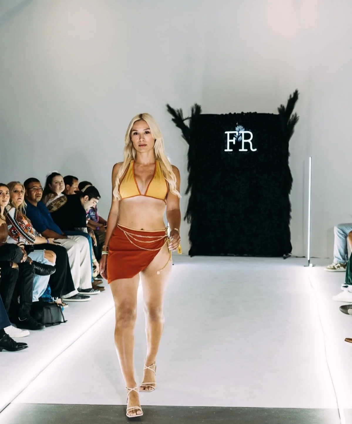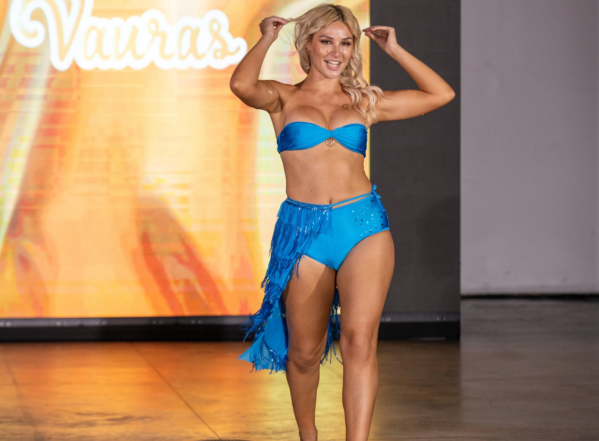 This one holds a special place. The Nita was shown at Fashion Redux 2025 and ended up winning People’s Choice and Most Creative Fabrication. It’s currently on display at the San Diego History Center and was inspired by vintage glam, bold textures, and a little upcycling magic.